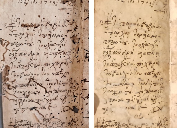 Προληπτική συντήρηση (με μικρές επεμβατικές συντηρήσεις, όπου ήταν αναγκαίες) και ψηφιοποίηση. (Συντηρήτρια χαρτώου υλικού Ιωαννέτα Παπαβλασοπούλου)