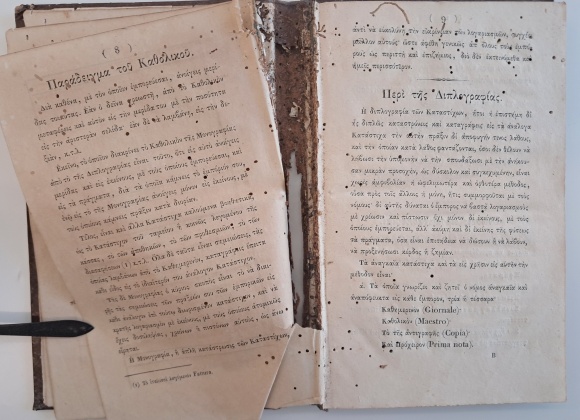 Την επεμβατική συντήρηση – αποκατάσταση του τόμου ανέλαβε η Σπυριδούλα Πρίφτη, συντηρήτρια χαρτώου υλικού.